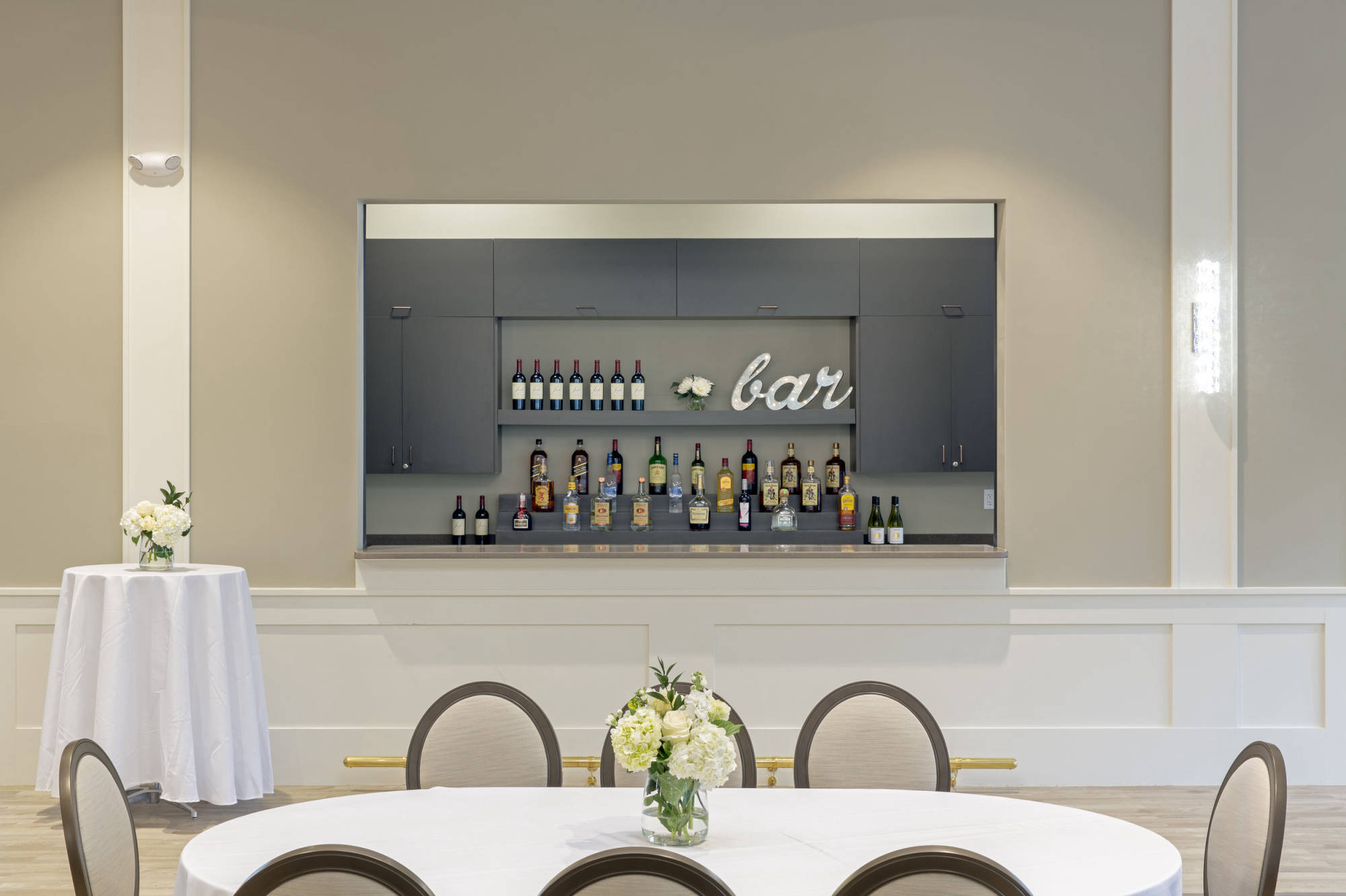 full service bar area for cocktails and a beautiful bridal suite for private photos.